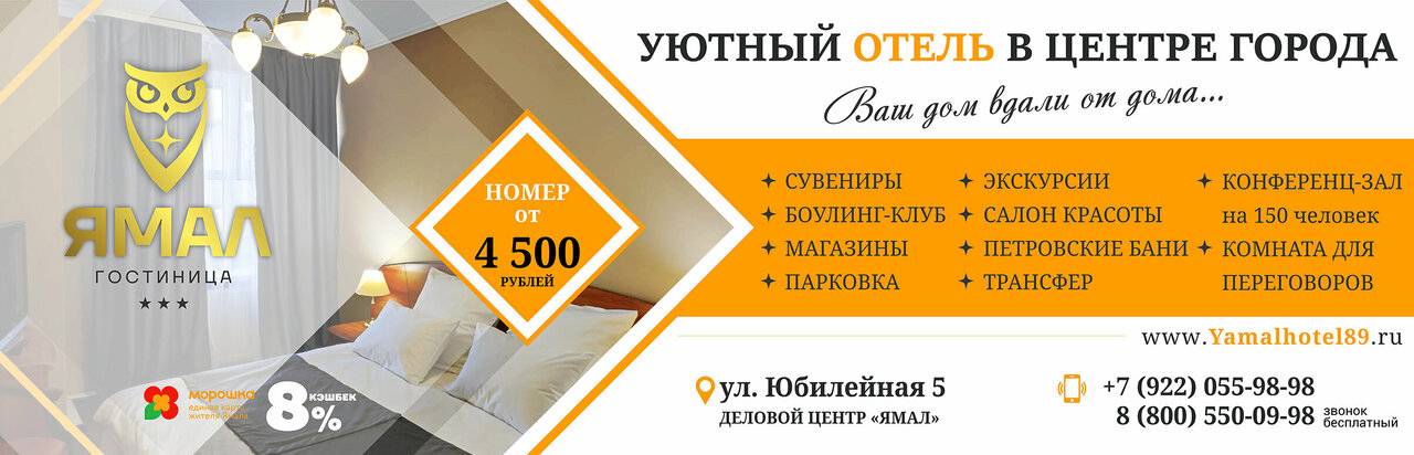Гостиница «Ямал» расположен в центре города Новый Уренгой, в его историческом, культурном и деловом центре, который прекрасно сочетает в себе деловую активность, сферу развлечений и спокойную размеренную жизнь.